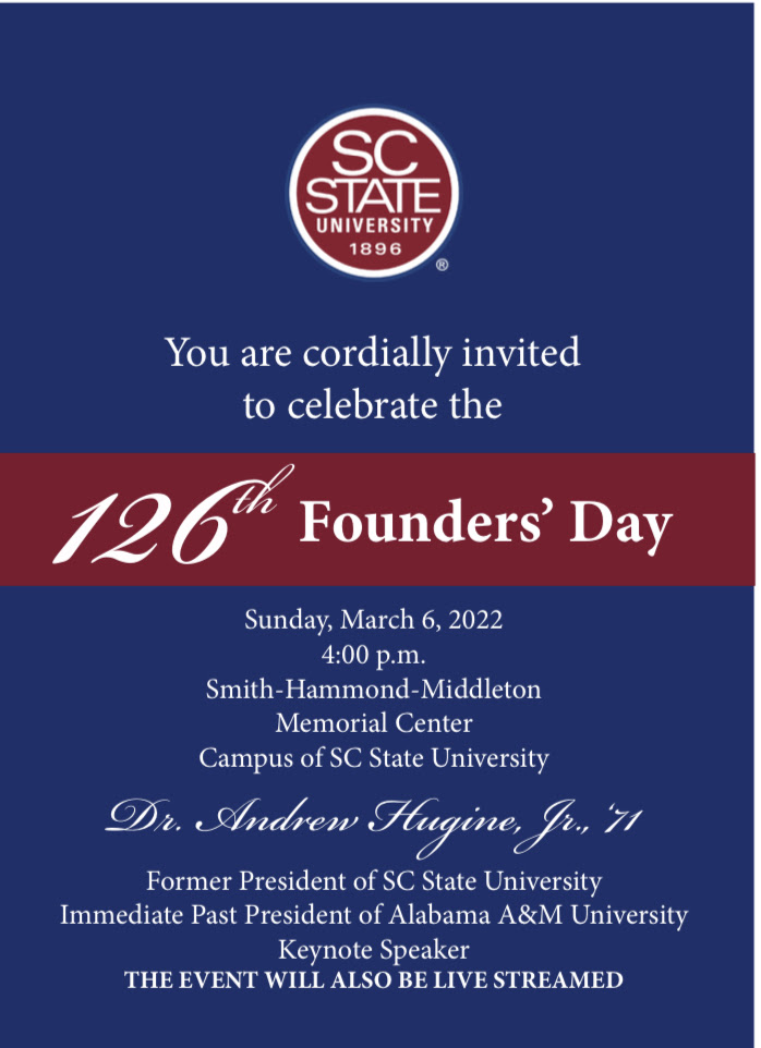 You are cordially invited to celebrate the 126th Founders' Day of SCSU.